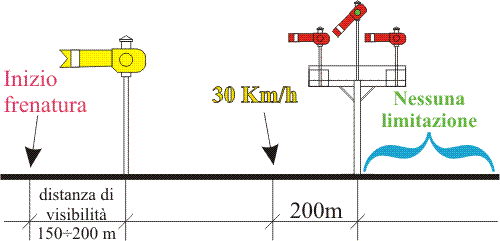 Per un maggiore dettaglio sul comportamento del macchinista che supera un segnale a luce "gialla" si veda sotto.