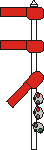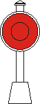 Ala gialla a coda di pesce orizzontale. Una luce gialla: Avviso di via impedita - Il successivo segnale è a via impedita.
